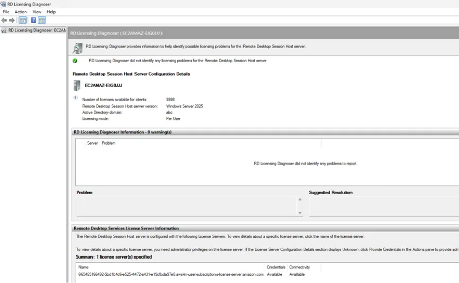 再開 RD Licensing Diagnoser 檢查是否消除警告。
